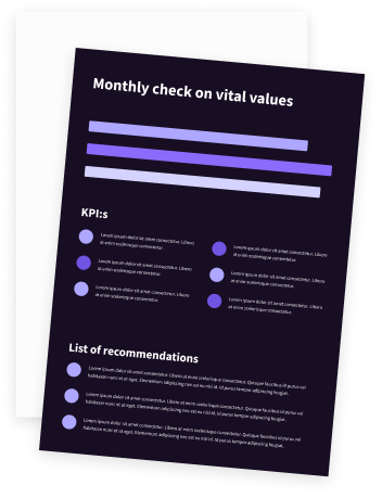 - Månadsrapport som visar hur din produkt presterar på era viktiga KPI:er